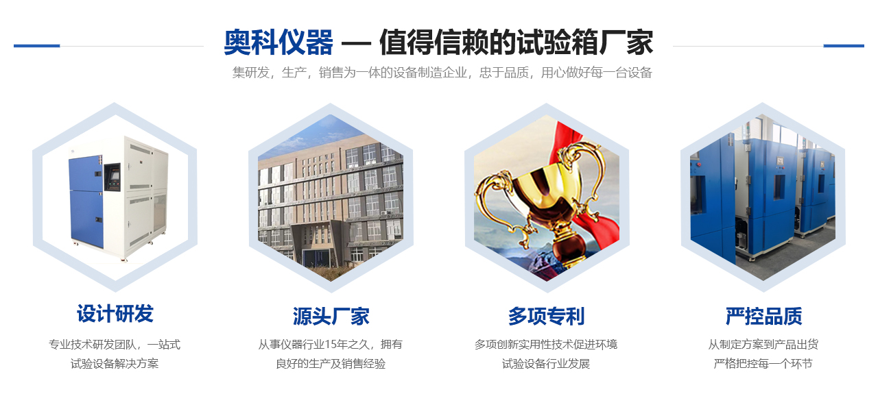 安徽奧科試驗設備有限公司隸屬于杭州奧科環境試驗設備有限公司直屬分公司,是一家從事各種試驗設備研發、生產與銷售一體的技術單位??偣緭碛袕姶蟮募夹g團隊及科學嚴謹的生產流程,鑄就了產品質量。公司本著“以質量求生存,以信譽求發展”的原則,為科研、軍事、航空、電子、汽車、石油、化工、醫療、通訊等各大院校和企事業單位提供符合GB、GJB、IEO、ISO、ASTM、MIL、DIN等標準的各類環境試驗設備,并可根據用戶的需求設計制造各類非標性設備。奧科奉行“進取求實嚴謹團結”的方針,不斷開拓創新,以技術為核心、視質量為生命、奉用戶為上帝,竭誠為您提供高性價比的自控產品及無微不至的售后服務。